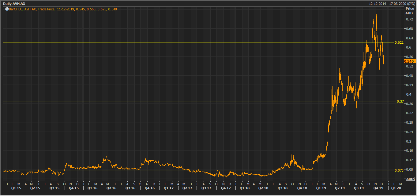 Stock Recommendation: As per ASX, the stock of AVH gave a return of 598.72% in the last one year, 51.39% in the past 6 months, but a negative return of 14.17% in the last one month.Currently, the stock is trading towards its 52-week’s high level of $0.740. From the valuation standpoint, it reported a higher EV/Sales and P/BV multiples of 34.8x and 9.9x respectively on TTM basis against the industry median of 11.1x and 4.2x, respectively indicating the stock to be overvalued.Considering the price movement in the past one year, stretched valuations, and current trading levels, we are of the view that most of the positive factors have been discounted at the current levels. Hence, we give a “Sell” recommendation on the stock at the current market price of A$0.540 per share, down 0.917% on 11 December 2019.
