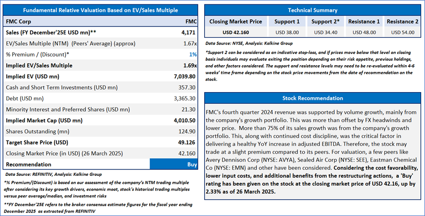 Section 2.0: FMC Corp (NYSE: FMC) (‘Buy’ at USD 42.160 Closing Market Price as on 26 March 2025)