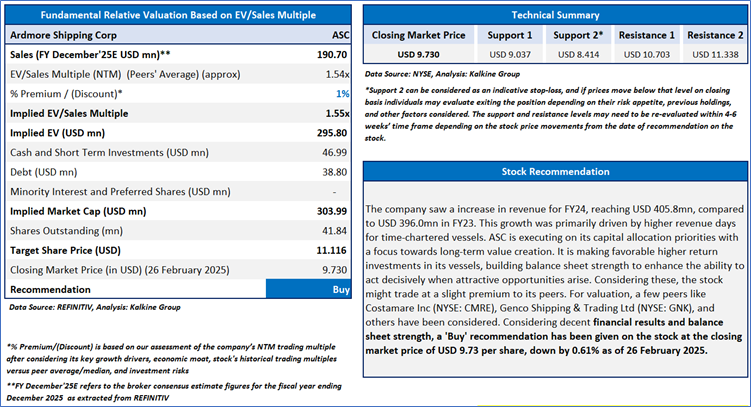 Section 2.0: Ardmore Shipping Corporation (NYSE: ASC) (‘Buy’ at USD 9.73 Closing Market Price as on 26 February 2025)