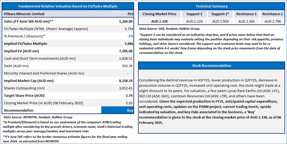 Section 2.0: Pilbara Minerals Limited (‘Buy’ at AUD 2.330, closing market price per share as on 06 February 2025)