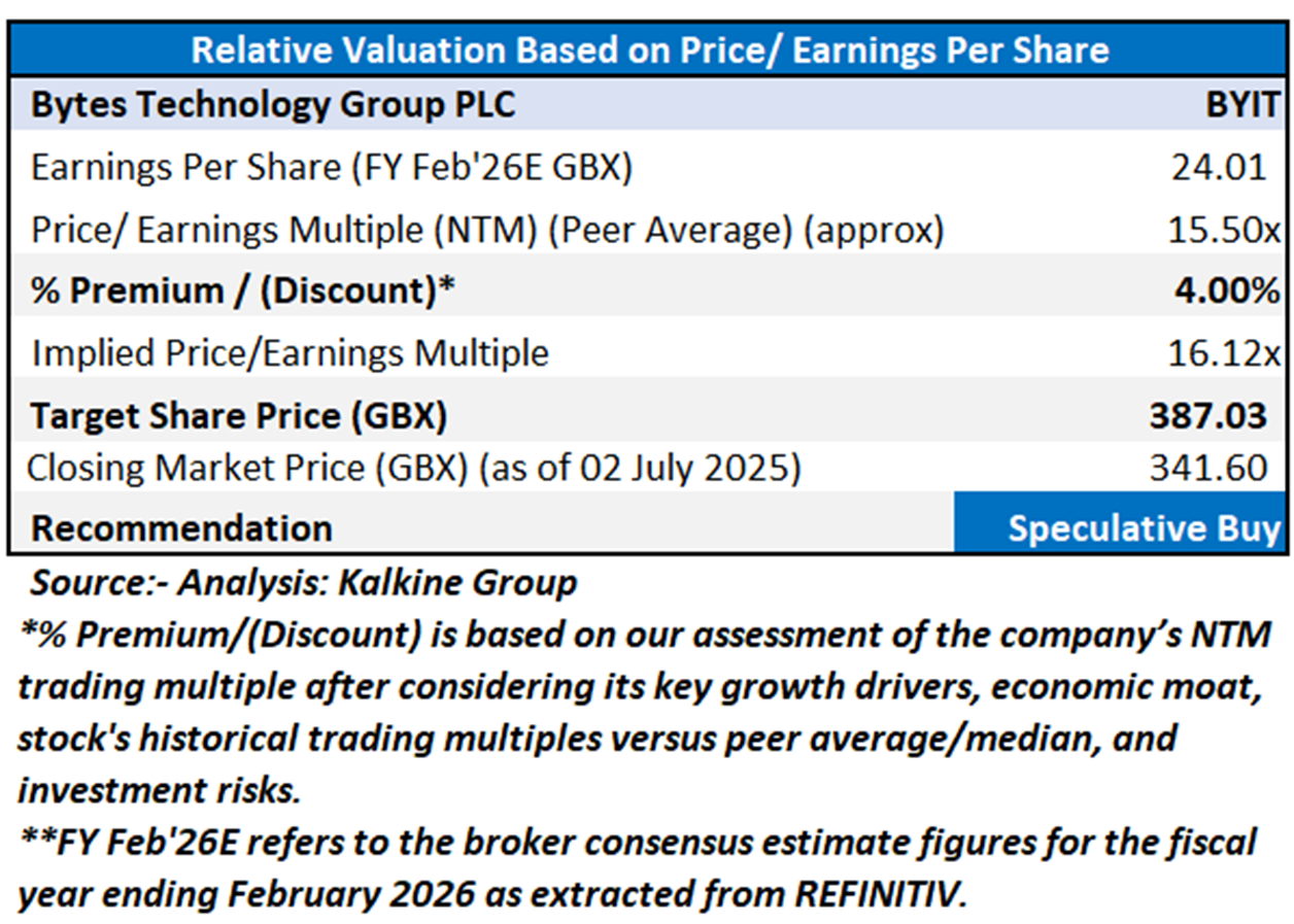 Valuation Methodology: Price to Earnings Multiple Based Relative Valuation (Illustrative):
