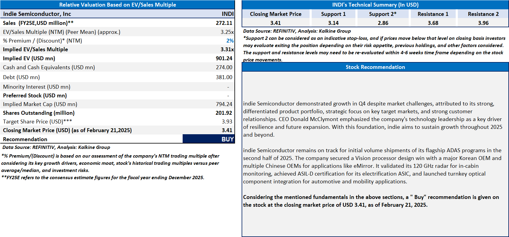 Section 2.0: indie Semiconductor, Inc (NASDAQ: INDI) (Buy at USD 3.41, closing market price as of February 21, 2025)