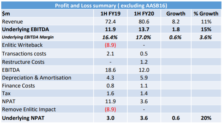 1H20 Financial Performance (Source: Company Reports)