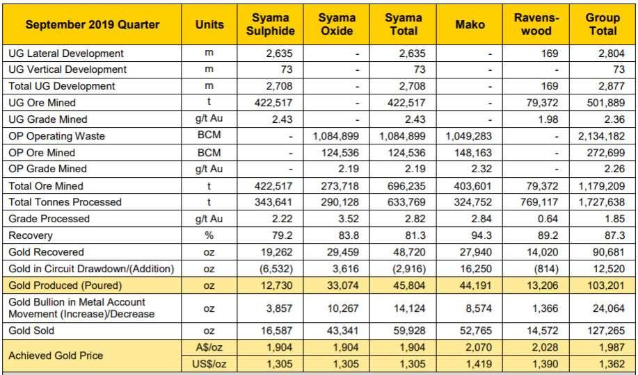Despite the Syama roaster being offline, gold production of the company increased by 2,092oz to 105,293oz in December 2019. For the same period, Mako produced 42,997oz of gold. For the quarter ended 30 September 2019, the company made gold sales of 127,265oz at an average gold price of US$1,362/oz..png)