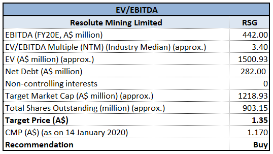 Stock Recommendation: As per ASX, the stock of RSG is inclined towards its 52-weeks’ low level of $0.965 and is offering a decent opportunity for accumulation. For the 1H19 net margin of the company stood at 12%, higher than the industry median of 10.6%. This indicates that the company is managing its costs well and is able to convert its revenue into profits. Considering the trading levels, higher net margin and improved guidance, we valued the stock using EV/EBITDA based multiple approach and have arrived at a target upside of lower double-digit (in percentage terms). Hence, we recommend a “Buy” rating on the stock at the current market price of $1.170, up by 4% on January 14, 2020, owing to its response for gold mine sale.