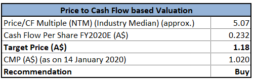 Stock Recommendation: As per ASX, the stock of SMR gave a return of 1.9% in the past one month and is trading close to its 52-weeks’ low level of $0.905. In the span of 3 years from FY16 to FY19, the company witnessed a CAGR of over 200% in revenue. During FY19, net margin of the company stood at 22.7%, higher than the industry media of 15.3%. In the same time span, ROE of the company was 79.6% as compared to the industry median of 13.2%. Considering the trading levels, CAGR in revenue and high ROE, we valued the stock using Price/Cash Flow based relative approach and arrived at a target upside of lower double-digit (in percentage terms). Hence, we recommend a “Buy” rating on the stock at the current market price of $1.020, down by 4.673% on January 14, 2020, owing to recent release of its quarterly results.
