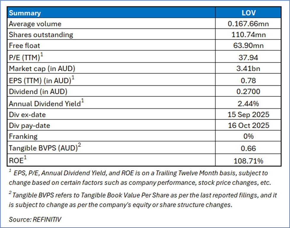 Company Overview: Lovisa Holdings Limited (ASX: LOV) is an Australia-based specialist fast fashion jewelry retailer. The Company and its subsidiaries are primarily involved in the retail sale of fashion jewelry and accessories. The Company is also focused on designing, developing, sourcing, and merchandising all its branded products.