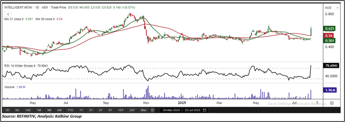 Overview: Intelligent Monitoring Group Limited (ASX: IMB) is Australasia’s largest independent security monitoring provider, delivering comprehensive security, monitoring, and risk management solutions across Australia and New Zealand. IMB has been a part of the 'Momentum Model Portfolio' since July 01, 2025. Therefore, an 'Exit' stance from the Momentum Model Portfolio is recommended on the stock at the current market price of AUD 0.625 as on July 25, 2025, at 13:28 PM AEST.