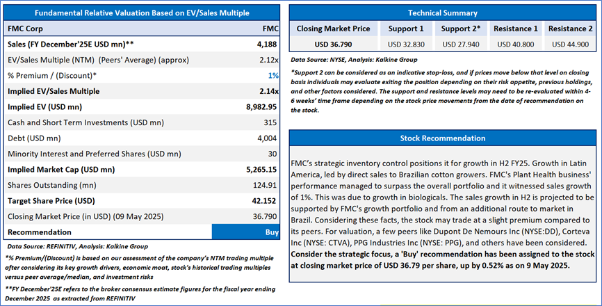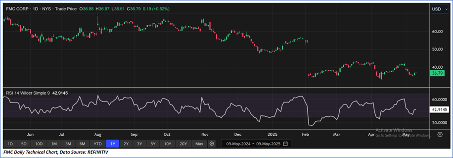 Section 2.0: FMC Corp (NYSE: FMC) (‘Buy’ at USD 36.79 Closing Market Price as on 09 May 2025)
