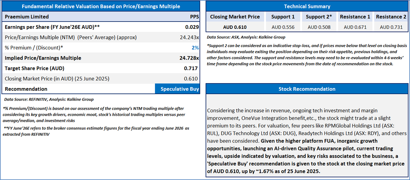 Section 2.0: Praemium Limited (‘Speculative Buy’ at AUD 0.610, closing market price per share as on 25 June 2025)