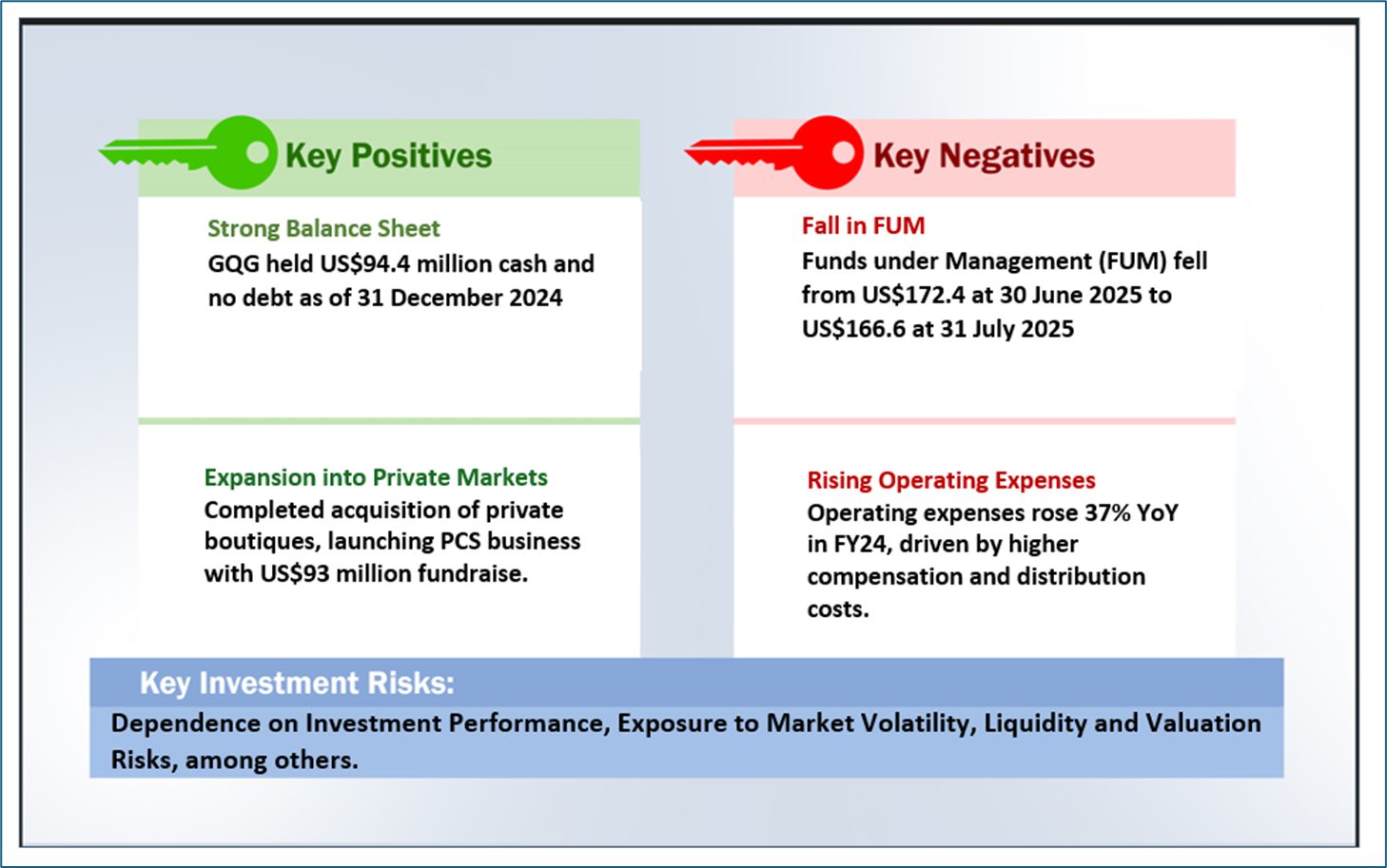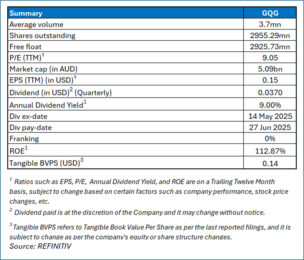 The stock has fallen by ~16.67% in the last 1 month and over the past 1-year, it has corrected by ~31.30%. The stock has a 52-week low and 52-week high of AUD 1.710 and AUD 2.970, respectively, and is currently trading close to 52-week low levels. GQG was previously covered in a report dated ’28 July 2025’.