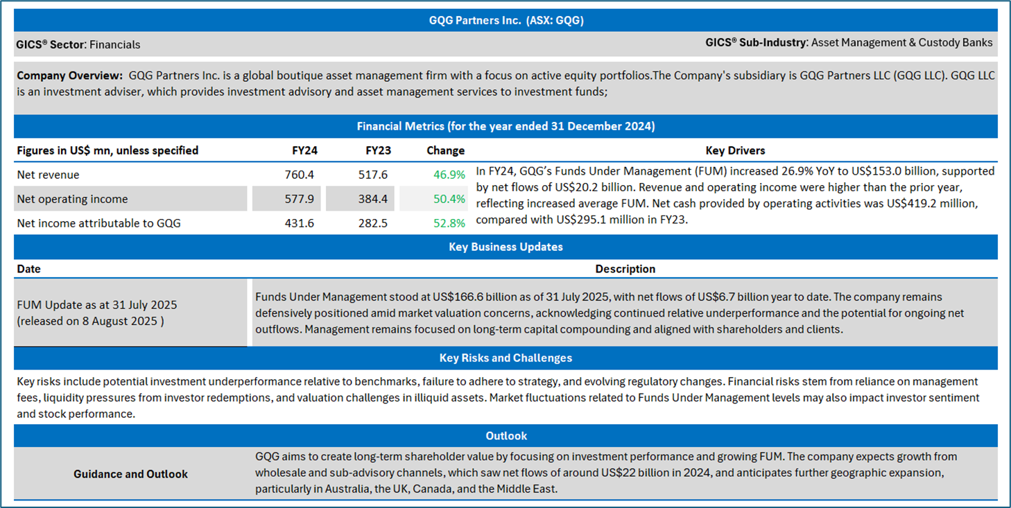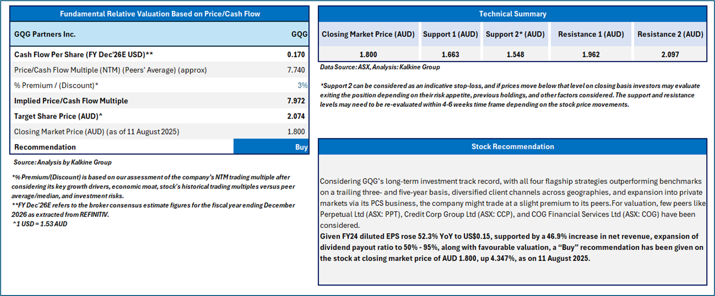 Section 2.0: GQG Partners Inc. (‘Buy’ at AUD 1.80, closing market price per share as on 11 August 2025)