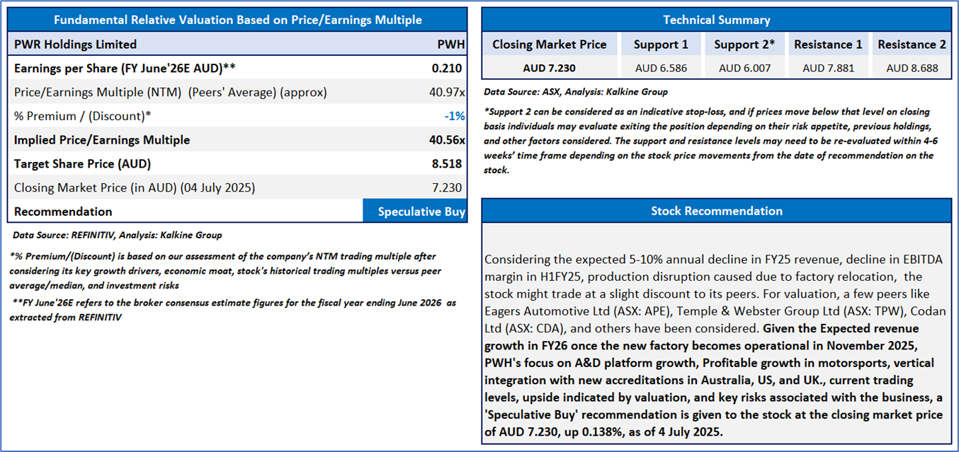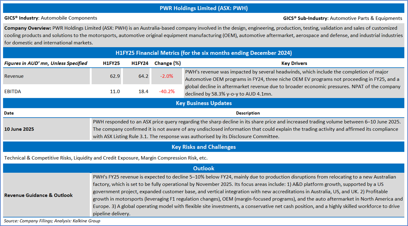 Section 2.0: PWR Holdings Limited (ASX: PWH) (‘Speculative Buy’ at AUD 7.230, Closing Market Price as on 4 July 2025)