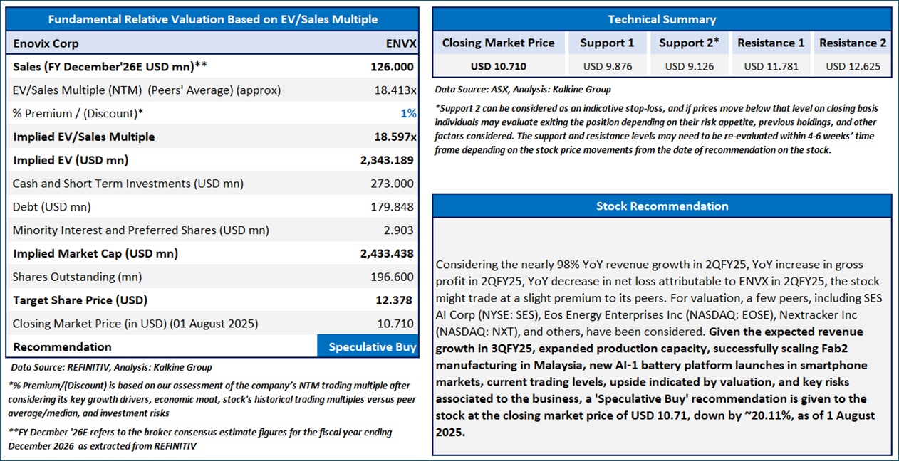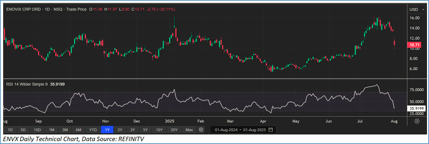 Section 2.0: Enovix Corporation (‘Speculative Buy’ at USD 10.71, closing market price per share as on 1 August 2025)