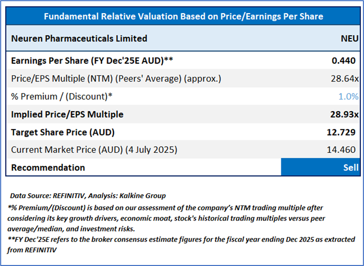 Stock might trade at a slight premium to its peers, considering FY24 royalties more than doubled, FY25 guidance suggests further growth, growing patient population for DAYBUE™, and other factors. Peers include Telix Pharmaceuticals Ltd (ASX: TLX), CSL Ltd (ASX: CSL), Vita Life Sciences Ltd (ASX: VLS), and others.