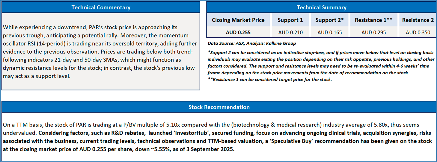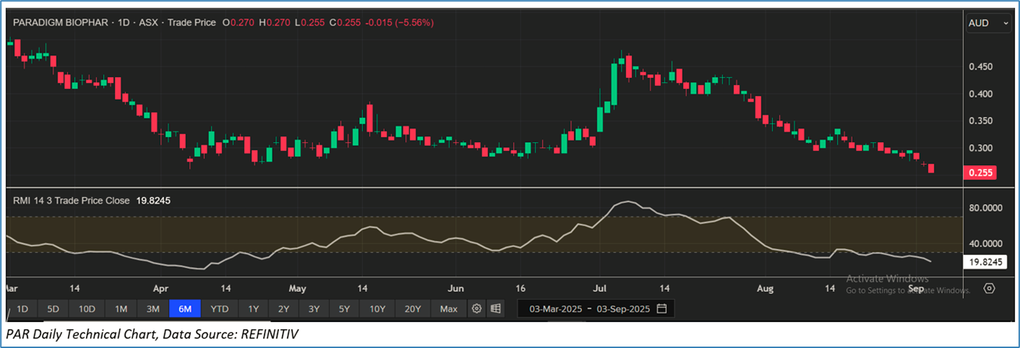 Section 2.0: Paradigm Biopharmaceuticals Limited (‘Speculative Buy’ at AUD 0.255, closing market price per share as on 3 September 2025)