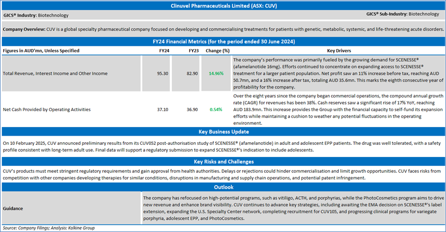 Section 2.0: Clinuvel Pharmaceuticals Limited (‘Speculative Buy’ at AUD 11.50, closing market price per share as on 10 February 2025)