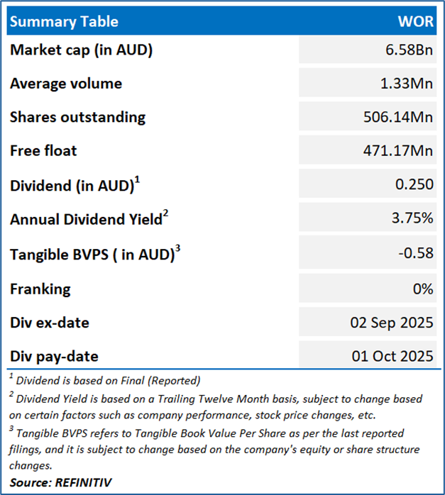 WOR is engaged in providing engineering design and project delivery services, including providing maintenance, reliability support and advisory services. The company caters to the energy, chemicals, and resources sectors.