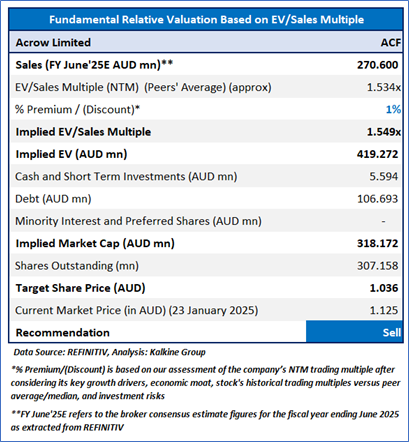 Valuation Methodology: EV/Sales Approach (FY June'25E) (Illustrative)