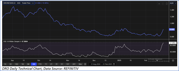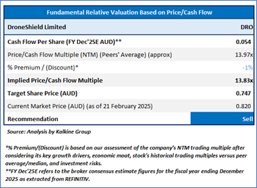 Considering the pipeline projects taking longer to complete than expected, decline in cash receipts, etc., the company might trade at a slight discount to its peers. For valuation, few peers like GWA Group Ltd (ASX: GWA), Austal Ltd (ASX: ASB), XRF Scientific Ltd (ASX: XRF), and others have been considered. Considering that the stock has surpassed its R2 level, rally in share price, current trading level, and risks associated, the share price can face consolidation at the current levels. Hence, a ‘Sell’ recommendation is given on the stock at the current price of AUD 0.820 (as of 21 February 2025, at 2:10 PM AEDT).