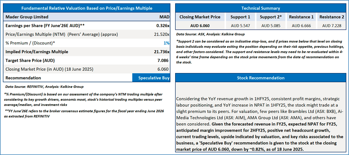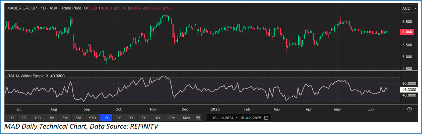 Section 2.0: Mader Group Limited (‘Speculative Buy’ at AUD 6.060, closing market price per share as on 18 June 2025)