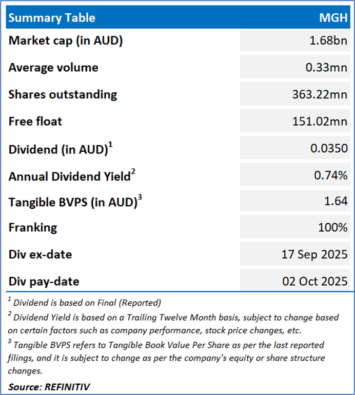 MGH is an Australian company that provides construction materials, equipment, and services providers with diversified exposures across the civil and infrastructure market.