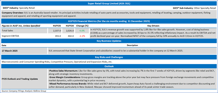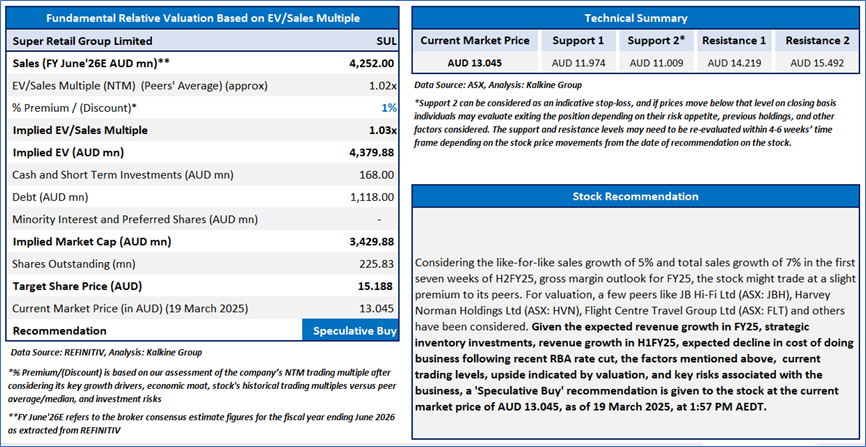 Section 2.0: Super Retail Group Limited’s (ASX: SUL) (‘Speculative Buy’ at AUD 13.045, Current Market Price as on 19 March 2025)