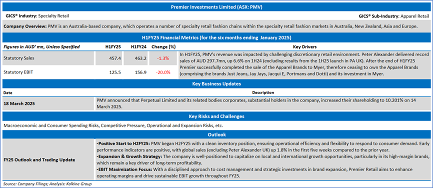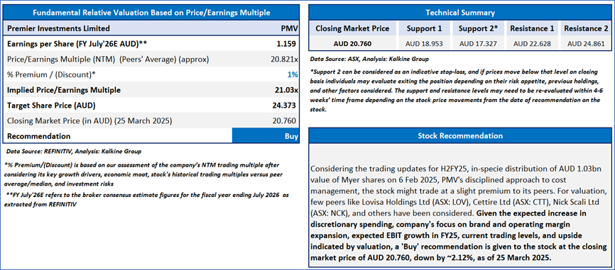 Section 2.0: Premier Investments Limited (‘Buy’ at AUD 20.760, Closing Market Price as on 25 March 2025)