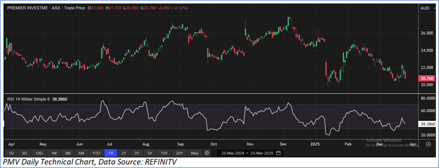 The stock has witnessed a decline of ~15.87% in the last three months and over the last six months, it has decreased by ~18.67%. The stock has a 52-week low and 52-week high of AUD 20.180 and AUD 36.870, respectively and is currently trading below the average of 52-week low and high. PMV was last covered in a report dated ‘7 March 2025’.
