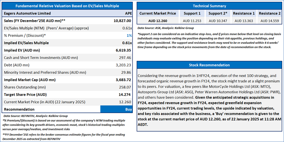 Section 2.0: Eagers Automotive Limited (‘Buy’ at AUD 12.260, current market price per share as on 22 January 2025)