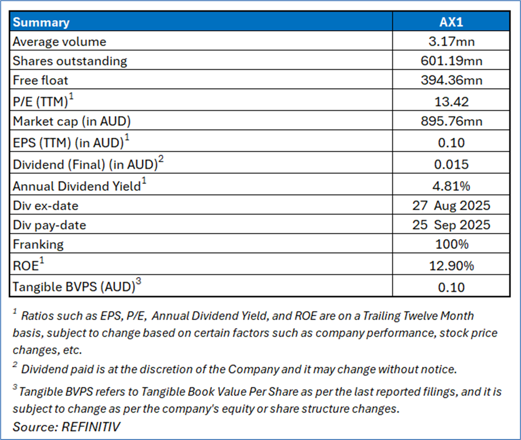 AX1’s share price has dropped by 4.28% in the past 1 month and it has corrected by around 31.37% in the last 1 year. The stock made a 52-week low and high of AUD 1.280 and AUD 2.660, respectively. AX1 was previously covered on 11 August 2025.