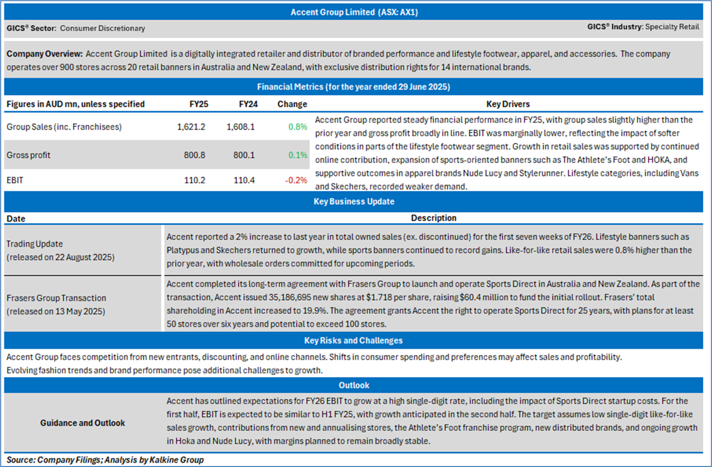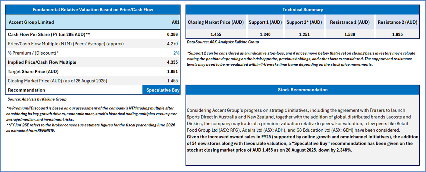 Section 2.0: Accent Group Limited (‘Speculative Buy’ at AUD 1.455, closing market price per share as on 26 August 2025)