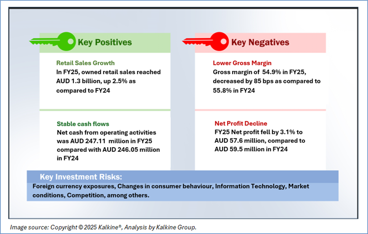 Company Overview: Accent Group Limited (ASX: AX1) is a retailer and distributor of performance and lifestyle footwear, apparel, and accessories with a digitally integrated model. The company has a network of more than 900 stores across 20 retail banners in Australia and New Zealand and holds exclusive distribution rights for 14 international brands. Its portfolio features both owned and licensed brands, including The Athlete’s Foot, Skechers, Vans, Dr. Martens, and Merrell. Kalkine’s Daily Report covers the Key Financial Metrics, Risks, Outlook, Technical Analysis along with the Valuation, Target Price, and Recommendation on the stock.