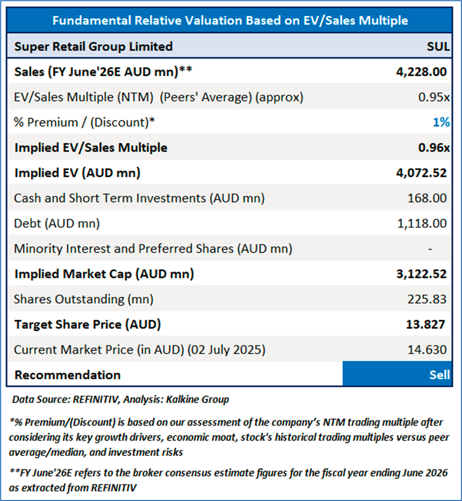 For conducting valuation, the following peers have been considered: Adairs Ltd (ASX: ADH), JB Hi-Fi Ltd (ASX: JBH), Accent Group Ltd (ASX: AX1) and others have been considered.