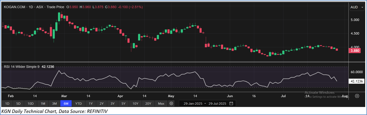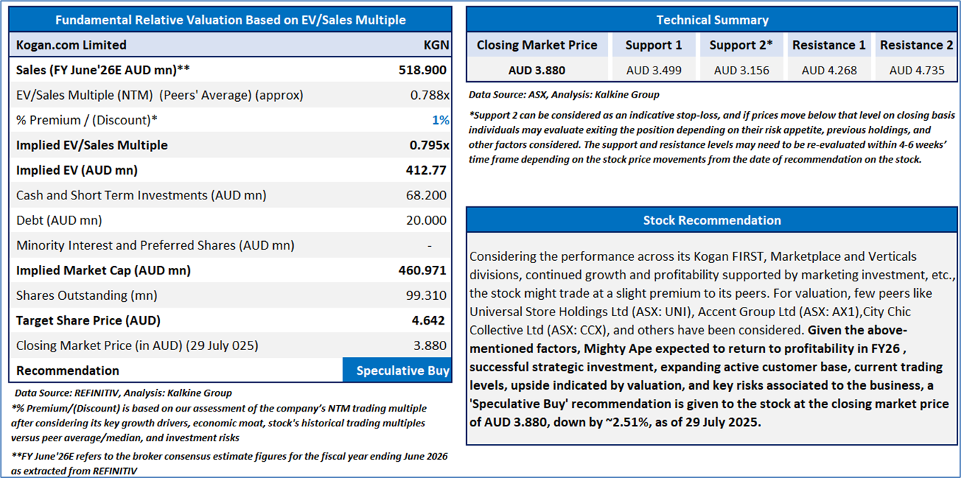 Section 2.0: Kogan.com Ltd (‘Speculative Buy’ at AUD 3.880, closing market price per share as on 29 July 2025)