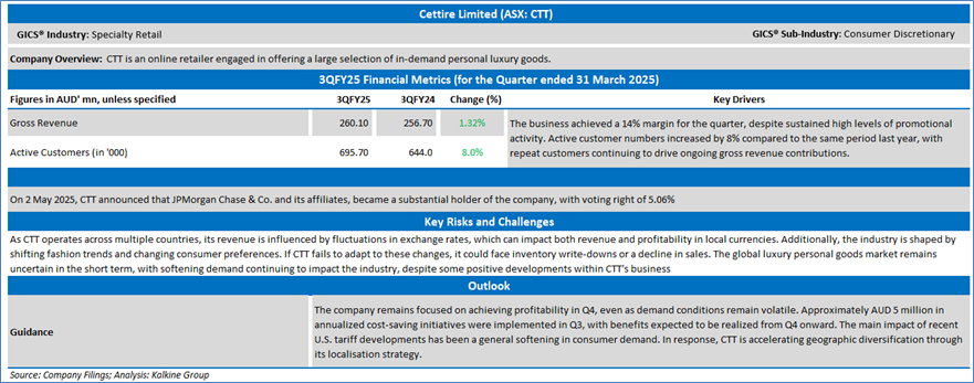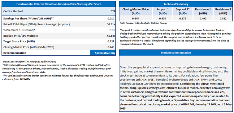 Section 2.0: Cettire Limited (‘Speculative Buy’ at AUD 0.445, closing market price per share as on 5 May 2025)