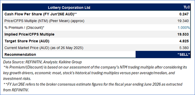 TLC is expected to trade at a slight premium to its peers considering the diversified game portfolio, consistent fully franked dividends (8.0 cents per share in H1 FY25), and planned product innovations. For conducting valuation, the following peers have been considered: Aristocrat Leisure Ltd (ASX: ALL), Breville Group Ltd (ASX: BRG), and JB Hi-Fi Ltd (ASX: JBH).