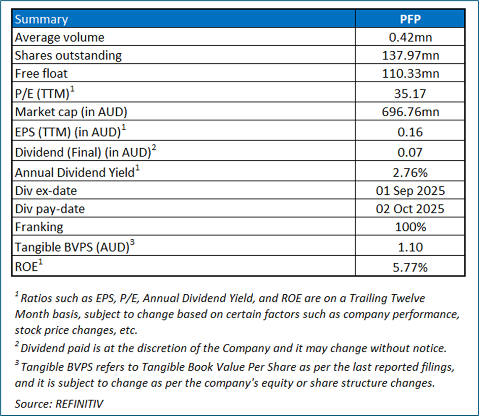 Given its current trading levels, recent rally in the share price, and risks associated, it is prudent to sell the stock at the current levels. Hence, a ‘Sell’ recommendation is given on the stock at the current market price of AUD 5.220, as of 28 August 2025 at 11:30 AM AEST.