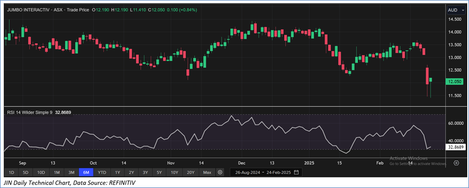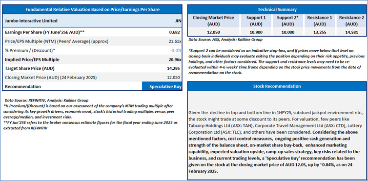 Section 2.0: Jumbo Interactive Limited (‘Speculative Buy’ at AUD 12.05, closing market price per share as on 24 February 2025)