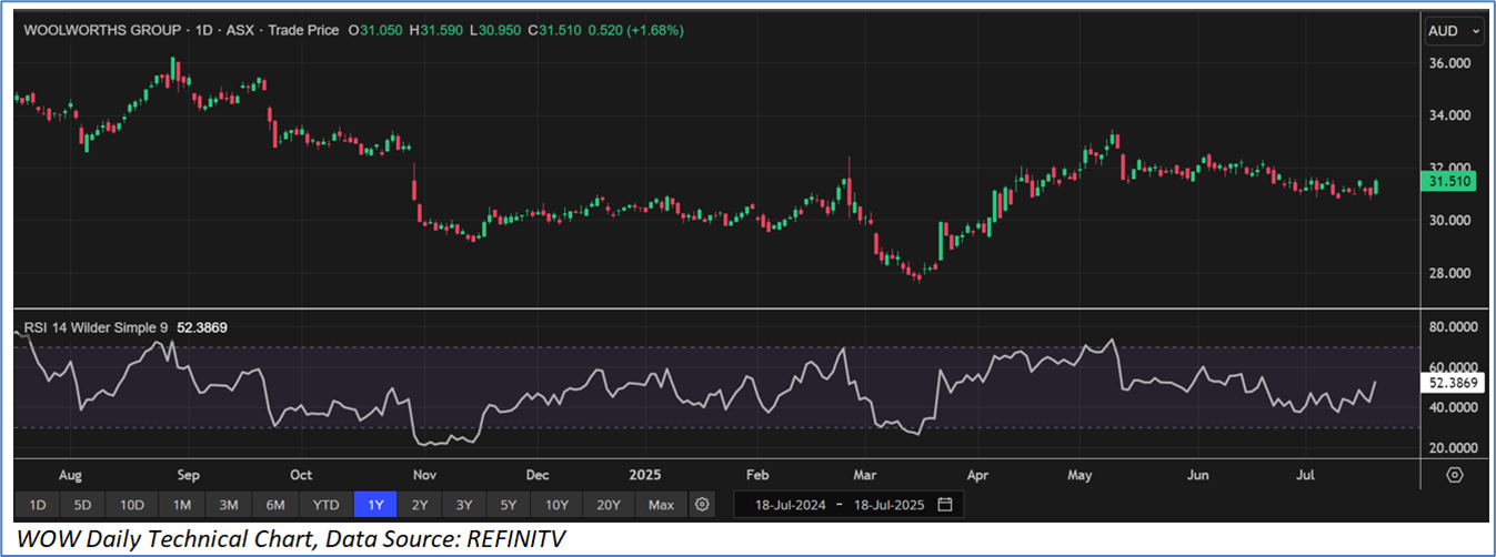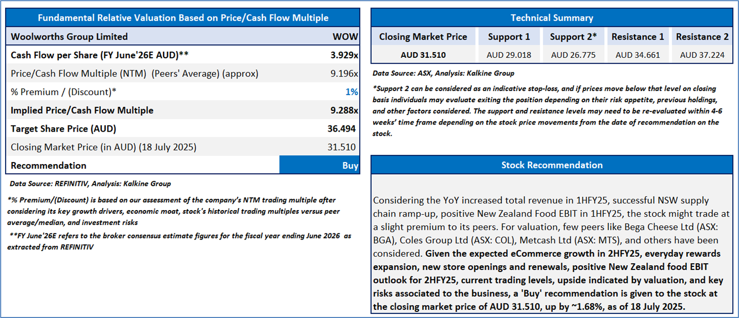 Section 2.0: Woolworths Group Limited (‘Buy’ at AUD 31.510, closing market price per share as on 18 July 2025)