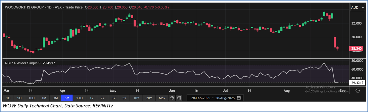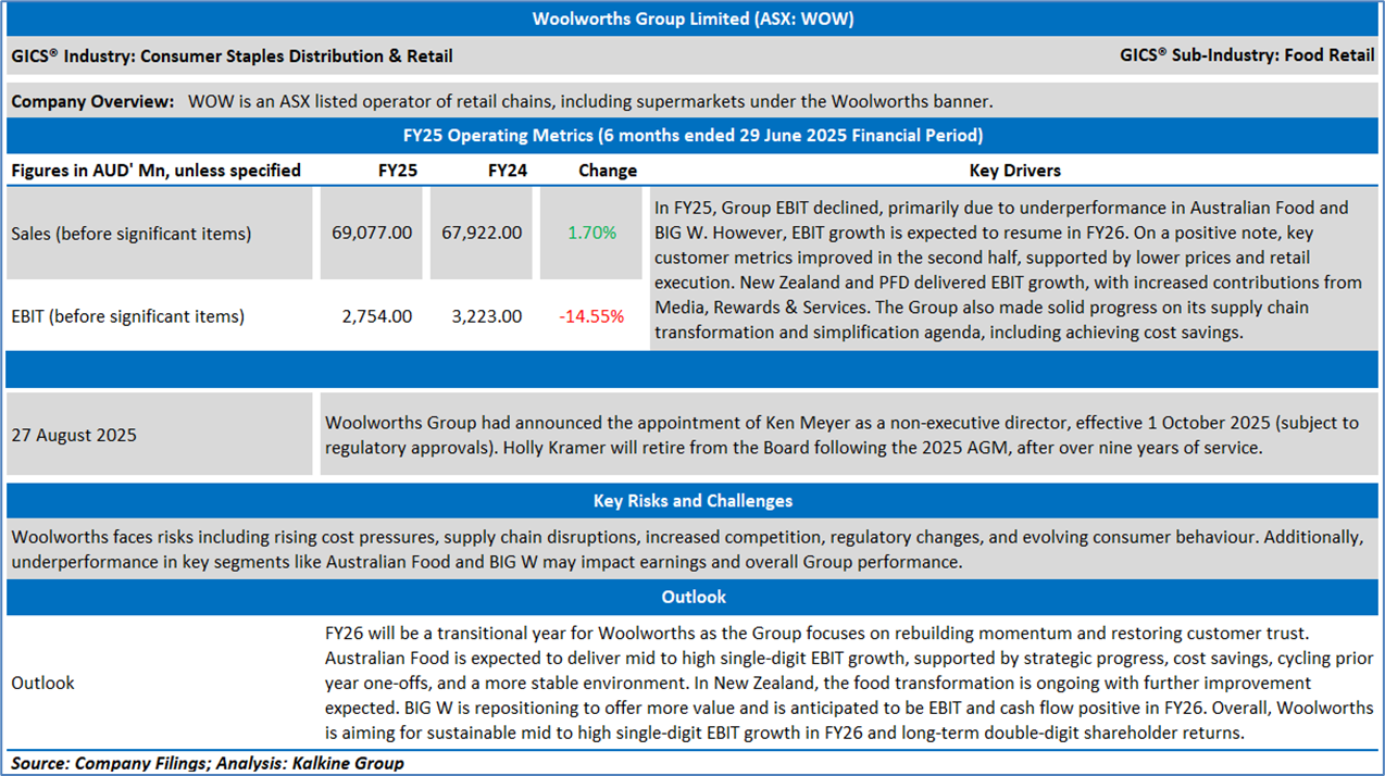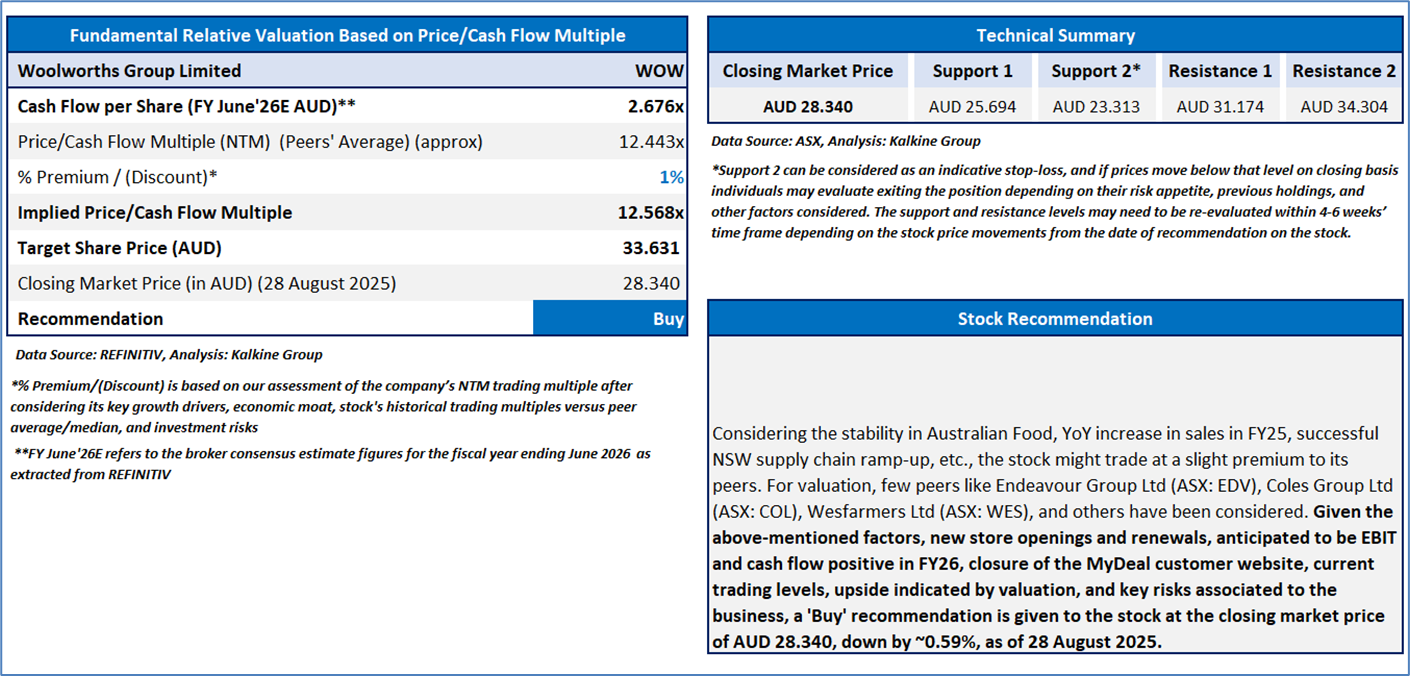 Section 2.0: Woolworths Group Limited (‘Buy’ at AUD 28.34, closing market price per share as on 28 August 2025)