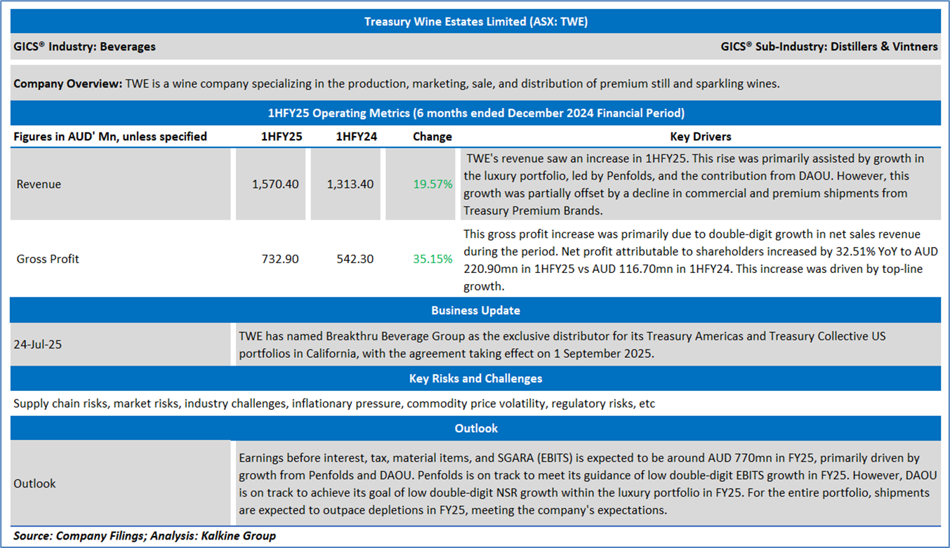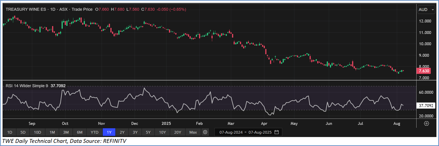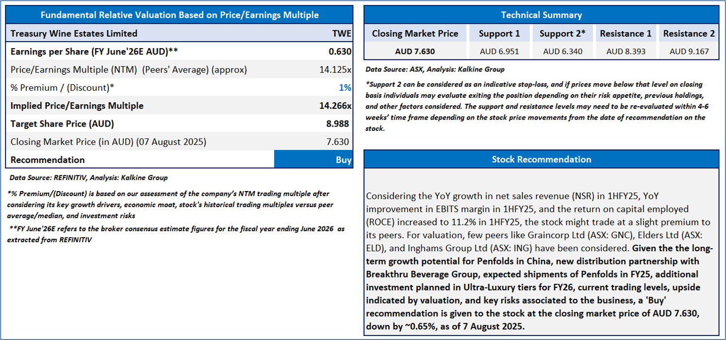 Section 2.0: Treasury Wine Estates Limited (‘Buy’ at AUD 7.630, closing market price per share as on 7 August 2025)