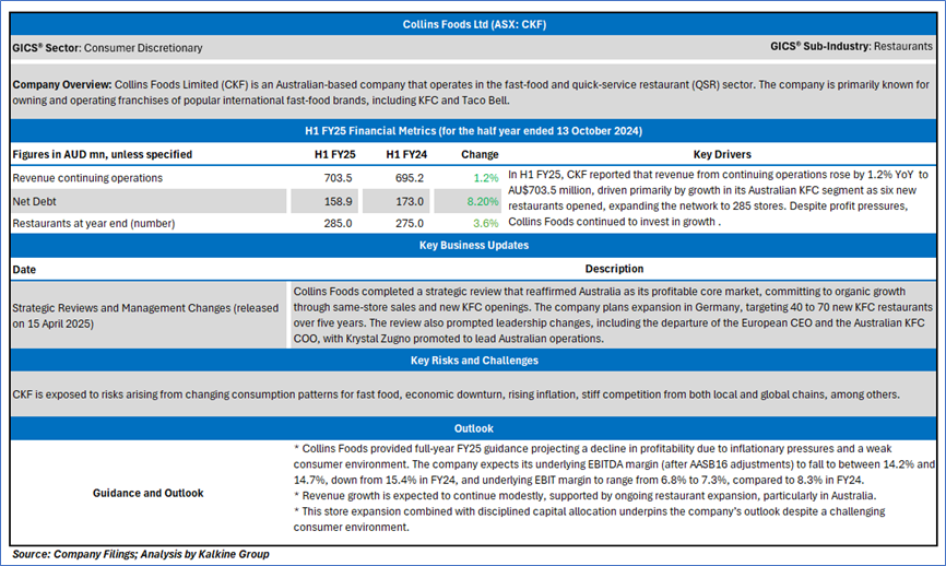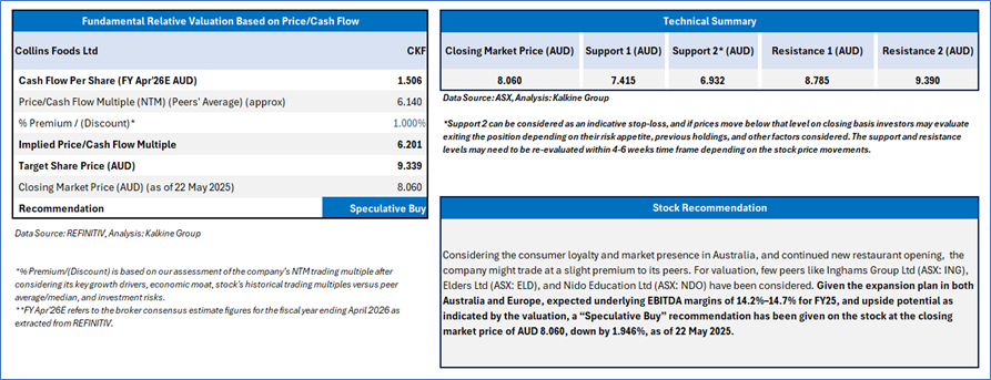 Section 2.0: Collins Foods Ltd (ASX: CKF) (‘Speculative Buy’ at AUD 8.060, Closing Market Price as on 22 May 2025)