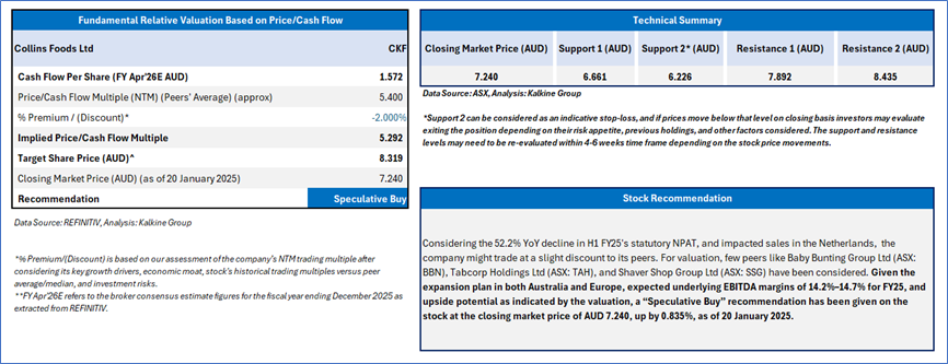 Section 2.0: Collins Foods Ltd (ASX: CKF) (‘Speculative Buy’ at AUD 7.240, Closing Market Price as on 20 January 2025)