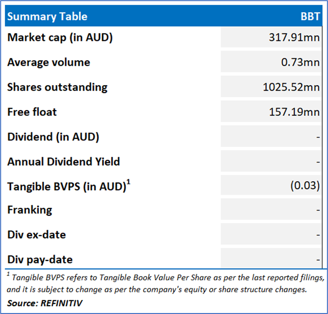 BBT Daily Technical Chart; Source: REFINITIV