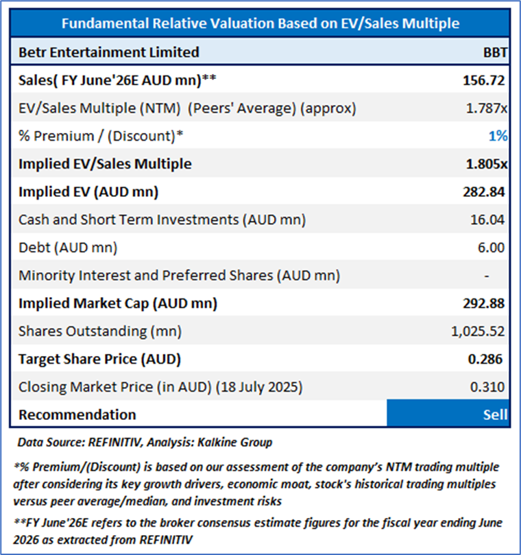 For conducting valuation, the following peers have been considered: Jumbo Interactive Ltd (ASX: JIN), Tabcorp Holdings Ltd (ASX: TAH), Lottery Corporation Ltd (ASX: TLC) and others.