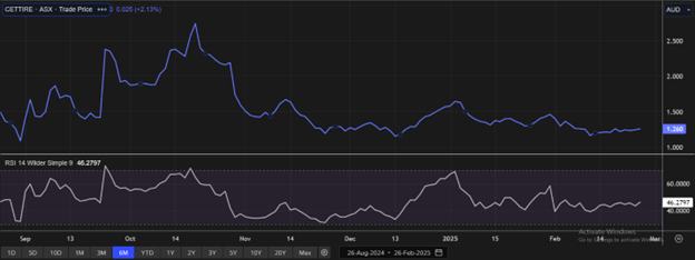 Considering that the company has reported EBITDA and NPAT decline in H1FY25, cautious outlook for FY25, technical chart observation, recent rally in share price, current trading level, and risks associated, the share price can witness resistance at the current levels. Hence, a ‘Sell’ recommendation is given on the stock at the current market price of AUD 1.26, as of 26 February 2025, at 10:09 AM AEDT..