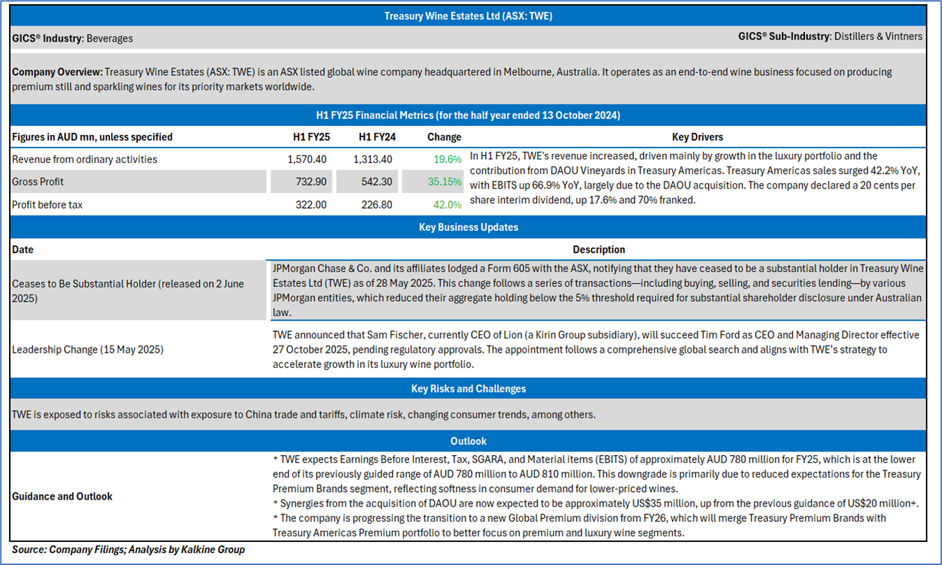 Section 2.0: Treasury Wine Estates Ltd (ASX: TWE) (‘Buy’ at AUD 8.10, Closing Market Price as on 2 June 2025)