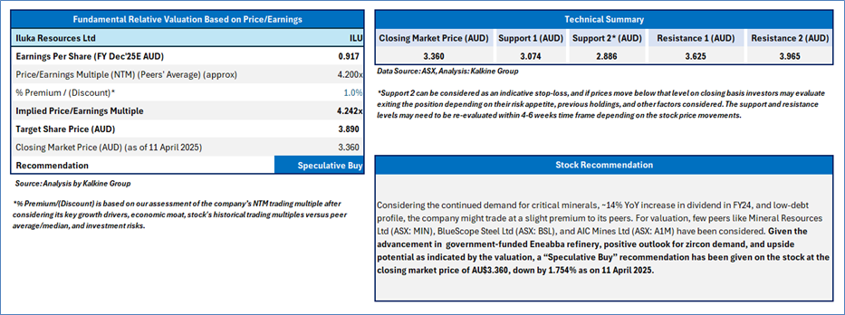 Section 2.0: Iluka Resources Ltd (‘Speculative Buy’ at AUD 3.360, closing market price as on 11 April 2025)