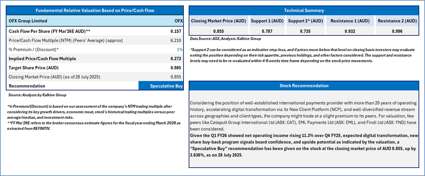 Section 2.0: OFX Group Limited (‘Speculative Buy’ at AUD 0.855, closing market price per share as on 28 July 2025)